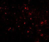 Immunofluorescence of ORAI1 in human spleen tissue with ORAI1 antibody at 20 μg/ml. |