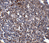 Immunohistochemistry of ORAI1 in human spleen tissue with ORAI1 antibody at 2.5 μg/mL.