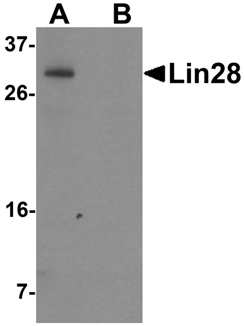 LIN28A; At least two isoforms of Lin28 are known to exist; this antibody will detect both. Lin28 antibody will not cross-react with Lin28 Homolog B.