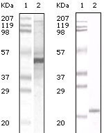 Figure 2: Western blot analysis using Apoa5 mouse mAb against human serum (A) and Apoa5 recombinant protein (B). |