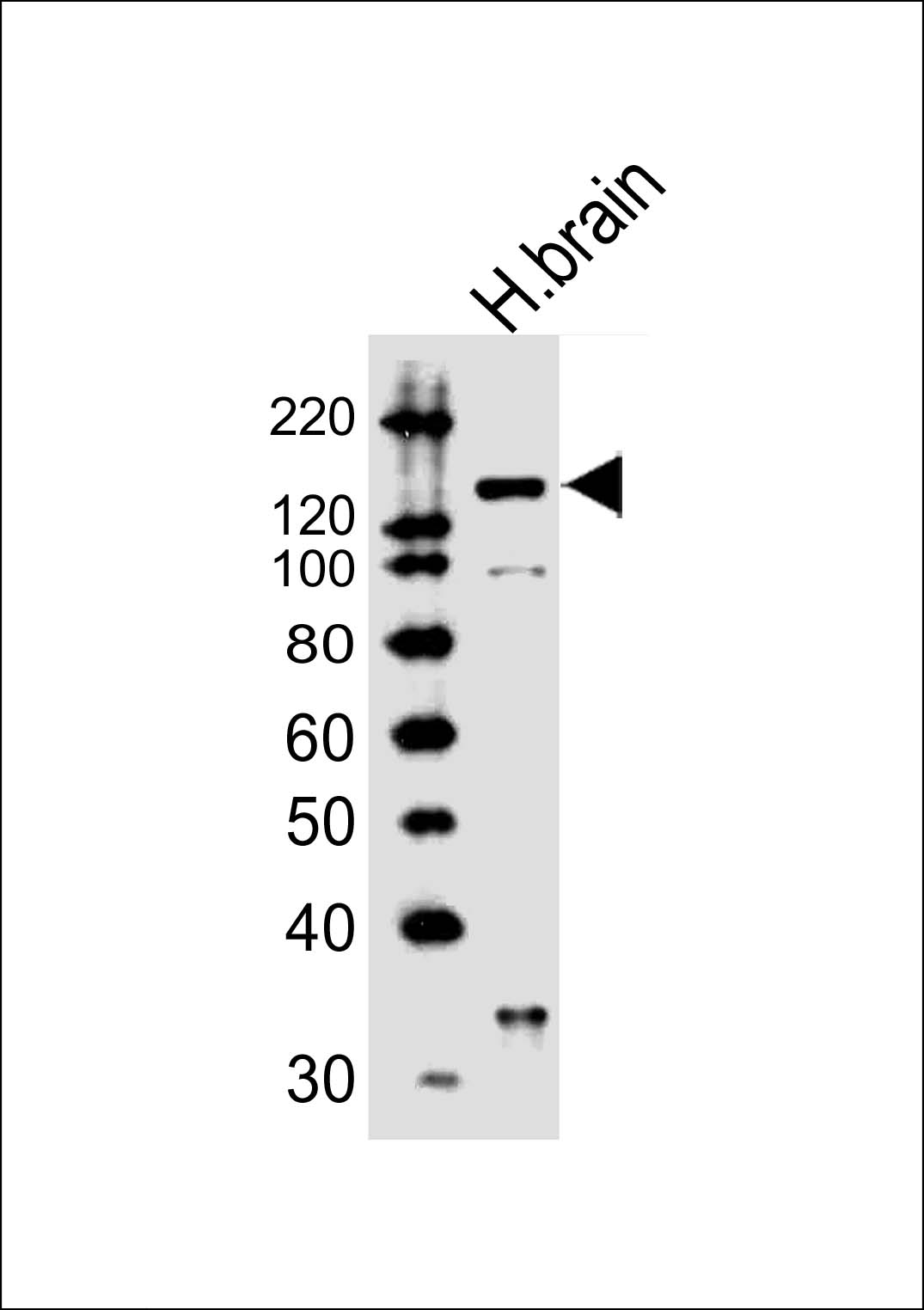Western blot analysis of lysate from human brain tissue lysate, using GABBR2 Antibody( APR11955G). APR11955G was diluted at 1:1000. A goat anti-rabbit IgG H&L(HRP) at 1:10000 dilution was used as the secondary antibody. Lysate at 20ug.