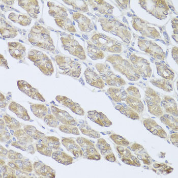 Immunohistochemistry of paraffin-embedded human stomach using MSMB antibody. |