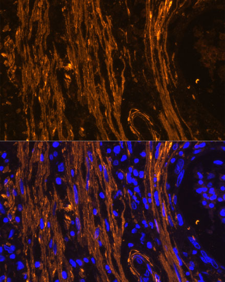 Immunofluorescence analysis of rat Intestine using alpha smooth muscle actin Polyclonal Antibody. |