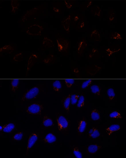 Immunofluorescence analysis of U-2 OS cells using ETHE1 Polyclonal Antibody. |
