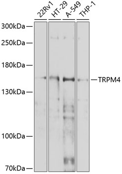 Western blot analysis of extracts of various cell lines, using TRPM4 antibody. |