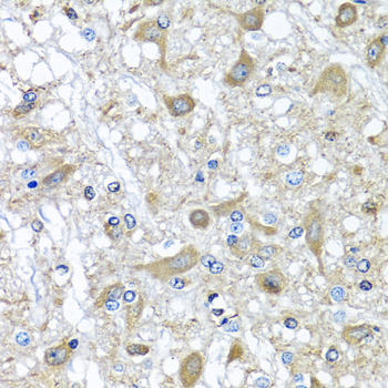 Immunohistochemistry of paraffin-embedded rat brain using SERPINA3 antibody.