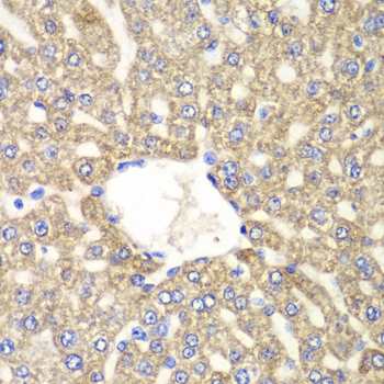 Immunohistochemistry of paraffin-embedded rat liver using ALDH2 antibody.
