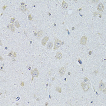 Immunohistochemistry of paraffin-embedded rat brain using SLC29A1 antibody.