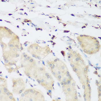 Immunohistochemistry of paraffin-embedded human stomach using PLEK antibody. |