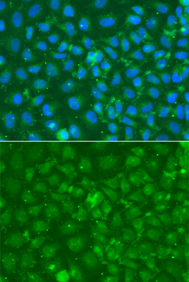 Immunofluorescence analysis of A549 cells using SRGN antibody. |