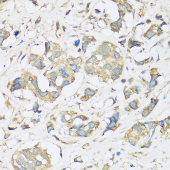 Immunohistochemistry of paraffin-embedded human breast cancer using ATP2A3 antibody.