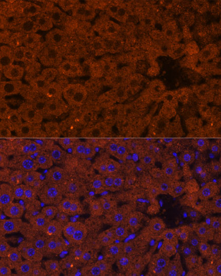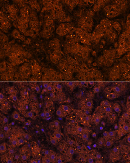 Immunofluorescence analysis of human liver using HMGCS2 Polyclonal Antibody. |