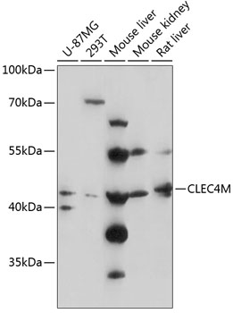 Western blot analysis of extracts of various cell lines, using CLEC4M antibody. |