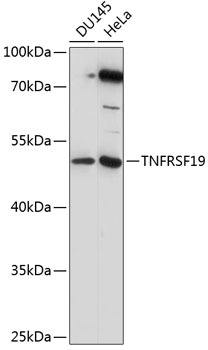 Western blot analysis of extracts of various cell lines, using TNFRSF19 antibody. |