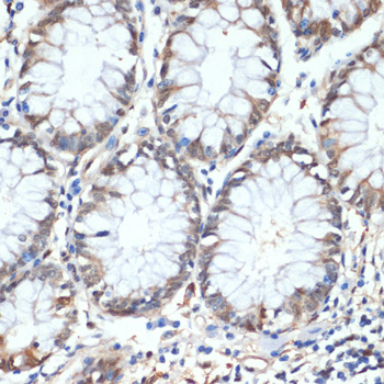 Immunohistochemistry of paraffin-embedded human colon using HSPA1A antibody.