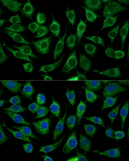 Immunofluorescence analysis of L929 cells using ABCD2 Polyclonal Antibody.