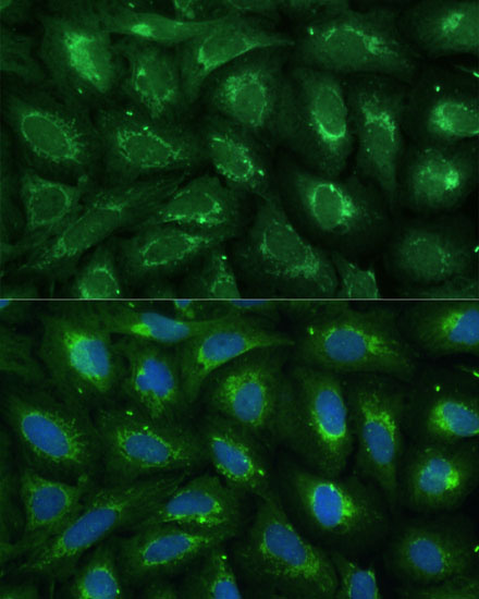 Immunofluorescence analysis of U-2 OS cells using ABCD2 Polyclonal Antibody. |