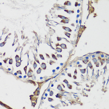 Immunohistochemistry of paraffin-embedded rat testis using Cyclin B1 antibody.