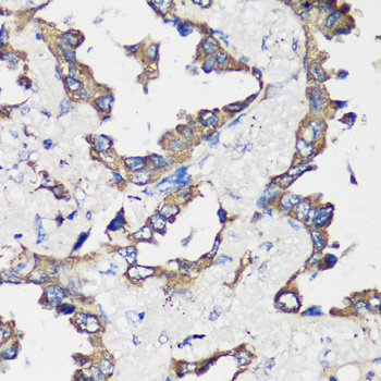 Immunohistochemistry of paraffin-embedded human lung cancer using Cyclin B1 antibody. |