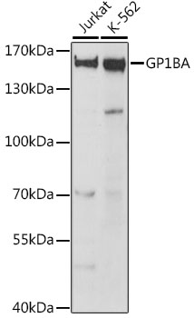 Western blot analysis of extracts of various cell lines, using GP1BA antibody.