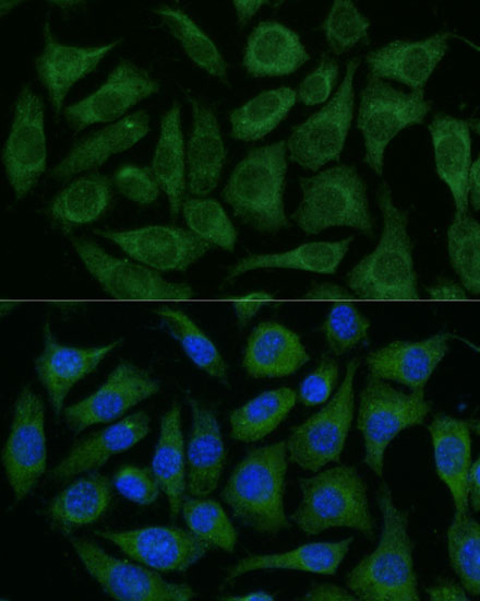 Immunofluorescence analysis of L929 cells using RAPGEF1 Polyclonal Antibody.