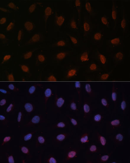 Immunofluorescence analysis of U-2 OS cells using MED25 Polyclonal Antibody. |