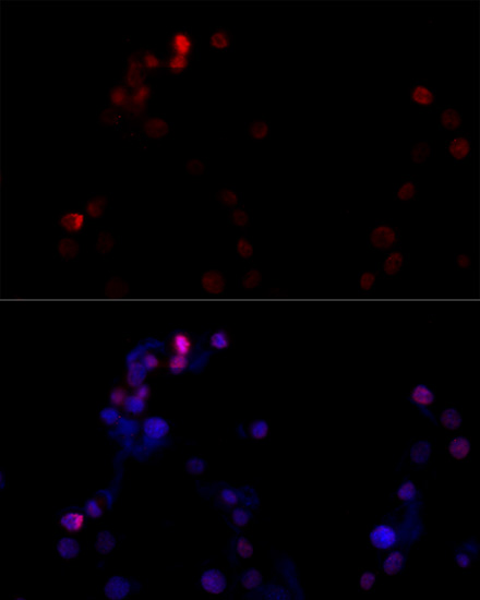 Immunofluorescence analysis of PC-12 cells using TBP antibody. |
