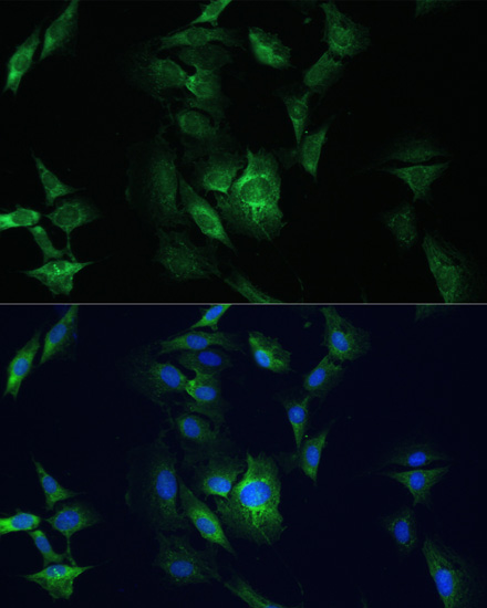 Immunofluorescence analysis of C6 cells using FADD antibody. |