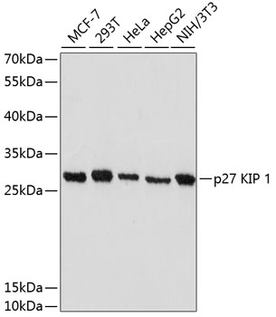 Western blot analysis of extracts of various cell lines, using p27 KIP 1 antibody. |
