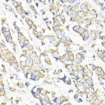 Immunohistochemistry of paraffin-embedded human breast cancer using TGFB1 antibody. |