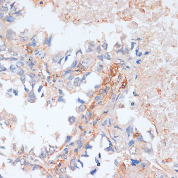 Immunohistochemistry of paraffin-embedded human lung cancer using EIF4EBP1 antibody. |