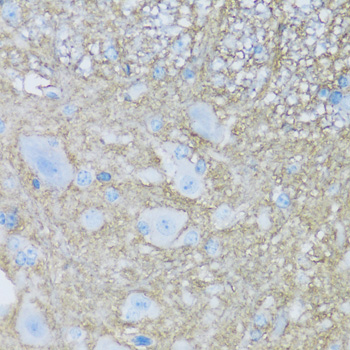 Immunohistochemistry of paraffin-embedded rat brain using ATP1B2 antibody.