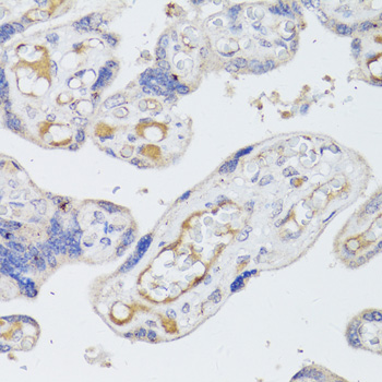 Immunohistochemistry of paraffin-embedded human placenta using BMPR2 antibody.