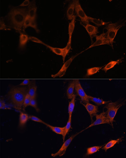 Immunofluorescence analysis of NIH/3T3 cells using HMGCR antibody. |