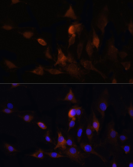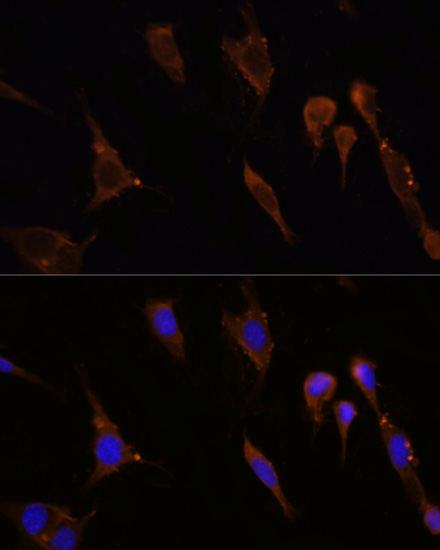 Immunofluorescence analysis of NIH/3T3 cells using HMGCR antibody. |