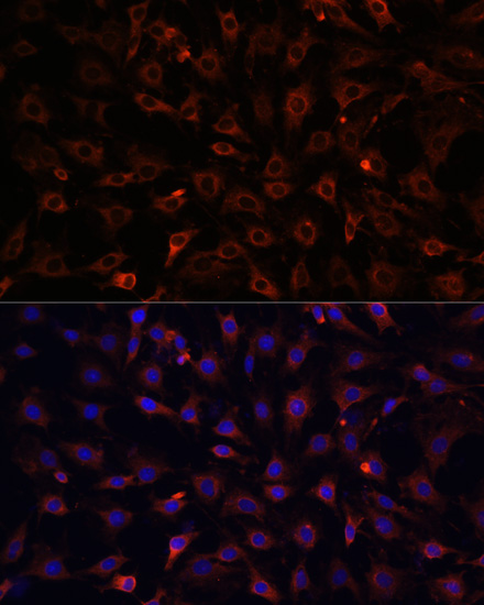Immunofluorescence analysis of NIH/3T3 cells using MYD88 antibody. |