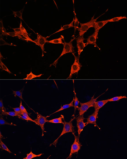 Immunofluorescence analysis of C6 cells using MYD88 antibody.
