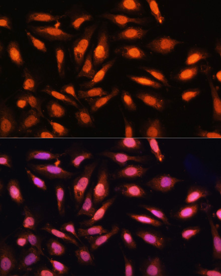 Immunofluorescence analysis of U2OS cells using P70 S6K antibody. |
