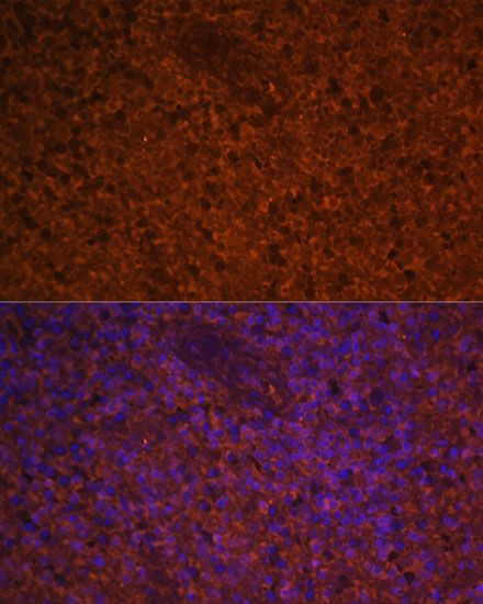 Immunofluorescence analysis of human spleen using CCL19 Polyclonal Antibody. |