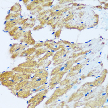 Immunohistochemistry of paraffin-embedded rat heart using ARHGEF5 antibody.