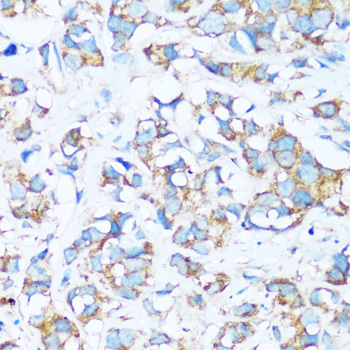 Immunohistochemistry of paraffin-embedded human breast cancer using ARHGEF5 antibody.