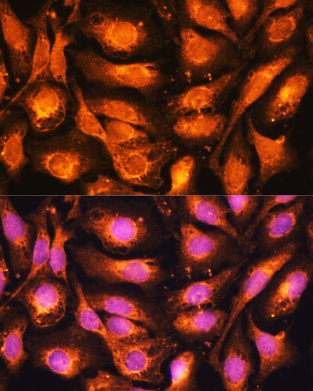 Immunofluorescence analysis of U2OS cells using DRP1 antibody. |