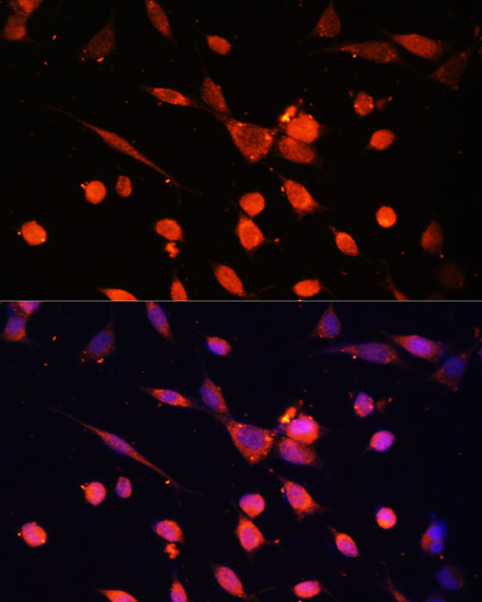 Immunofluorescence analysis of NIH-3T3 cells using PIK3R3 antibody. |