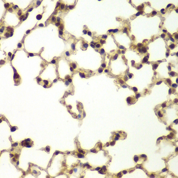 Immunohistochemistry of paraffin-embedded mouse lung using ERCC3 antibody. |