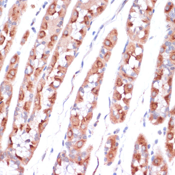 Immunohistochemistry of paraffin-embedded human stomach using UBE2O antibody. |