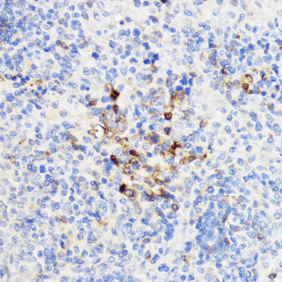 Immunohistochemistry of paraffin-embedded rat spleen using YKL-40 / CHI3L1 antibody.
