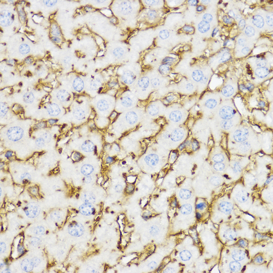 Immunohistochemistry of paraffin-embedded mouse liver using YKL-40 / CHI3L1 antibody. |