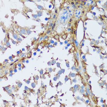 Immunohistochemistry of paraffin-embedded human lung cancer using MAPK1-MAPK3 antibody. |