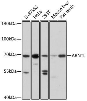 Western blot analysis of extracts of various cell lines, using ARNTL antibody. |