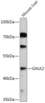 Western blot analysis of extracts of Mouse liver, using GALK2 antibody. |